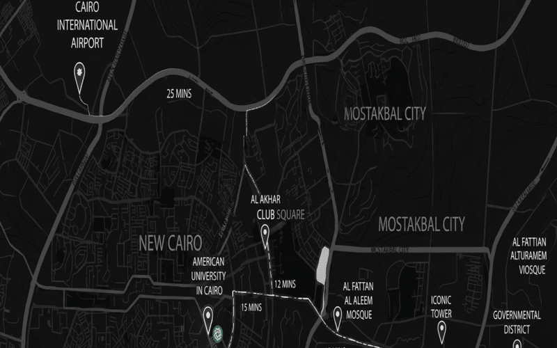 لو عارف منطقة الجولدن سكوير في التجمع الخامس، هتعرف إن الدائري الأوسطي ده المحور الذهبي اللي بتقع عليه أغلى وأرقى كمبوندات المنطقة. كمبوند كوليكتيف القاهرة الجديدة بيقع تحديداً بين كمبوند الباتيو أورو من لافيستا، وكمبوند 97 هيلز — وده بيعني إن المشروع محاط بمجتمعات سكنية راقية من كل اتجاه، وده بذاته ضمانة للقيمة الاستثمارية على المدى البعيد.